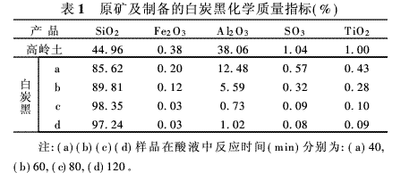 表1為高嶺土精礦及制備的白炭黑化學(xué)質(zhì)量指標(biāo)。