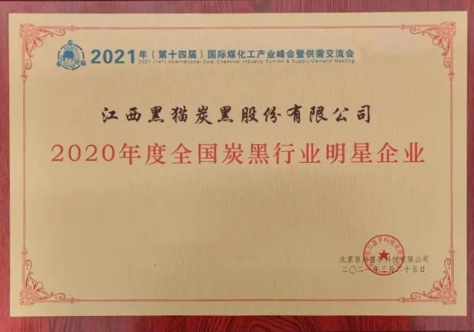 中化新網訊(記者姜小毛 通訊員江影)3月30日,記者從江西黑貓炭黑股份有限公司獲悉,在3月24一26日于四川成都召開的2021年(第十四屆)國際煤化工產業峰會暨供需交流會上,發布了 “2020年度中國優秀炭黑生產企業”名單,黑貓股份榮獲“2020年度全國炭黑行業明星企業”稱號。