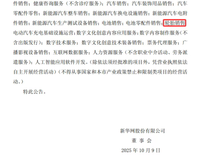 對于企業而言,經營范圍的調整往往與市場發展趨勢及公司戰略規劃密切相關。新華網此次新增輪胎銷售業務,是基于自身發展需求做出的決策,后續其在該領域的布局及發展動態值得行業關注。作為中央企業旗下的上市企業,新華網憑借自身的資源優勢和平臺影響力,在拓展新業務時或將具備一定的競爭優勢。、