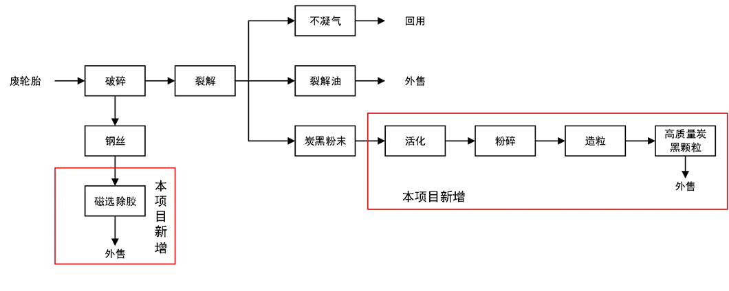該項目不涉及廢橡膠煉油及現有工程粗炭黑生產工序改造,建設內容為炭黑活化、造粒、包裝及鋼絲除膠。本項目新增炭黑深加工僅針對現有工程炭黑粉末,無新增產能。
