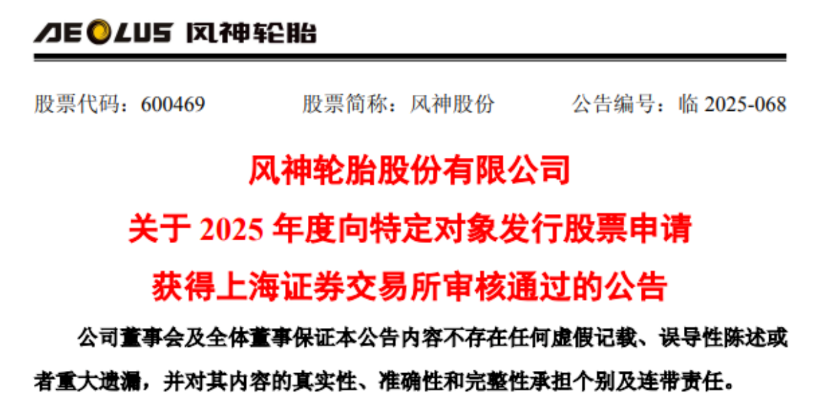 【炭黑產業網】11月28日消息,近日,風神輪胎股份有限公司對外公布了其向特定對象發行股票事項的最新動態。據公告顯示,該公司提交的發行股票申請已順利通過上海證券交易所的嚴格審核。上交所明確指出,風神輪胎此次發行股票的事項完全符合相關的發行條件、上市條件以及信息披露要求。接下來,上交所將在收到風神輪胎的正式申請文件后,進一步提交至中國證監會進行注冊流程。