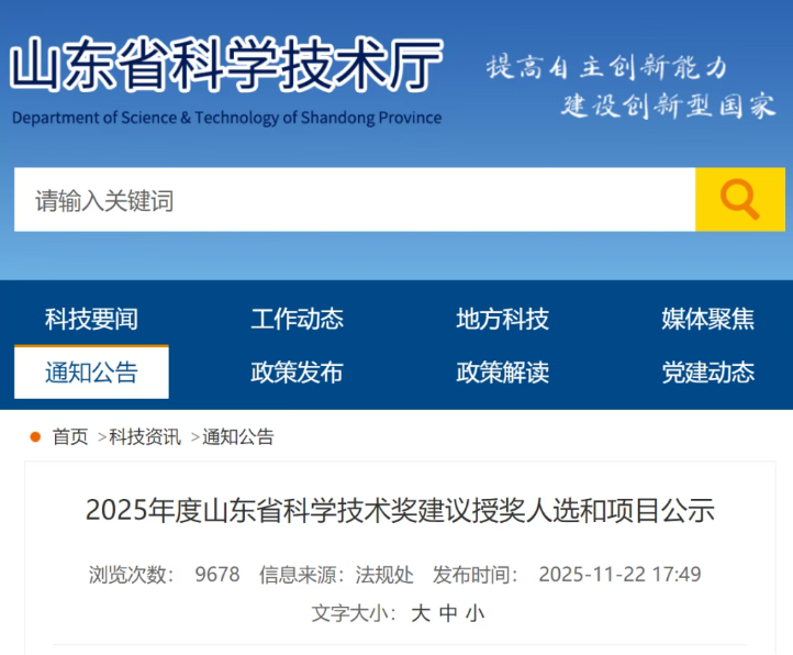 據(jù)炭黑產(chǎn)業(yè)網(wǎng)了解,2025年度山東省科學(xué)技術(shù)獎(jiǎng)評(píng)審委員會(huì)給出的建議授獎(jiǎng)人選(項(xiàng)目)名單十分豐富。其中科學(xué)技術(shù)最高獎(jiǎng)有2人擬獲此殊榮,自然科學(xué)獎(jiǎng)有51項(xiàng)、技術(shù)發(fā)明獎(jiǎng)有31項(xiàng)、科學(xué)技術(shù)進(jìn)步獎(jiǎng)多達(dá)189項(xiàng),此外還有科學(xué)技術(shù)青年獎(jiǎng)10人、國(guó)際科學(xué)技術(shù)合作獎(jiǎng)4人擬獲相應(yīng)獎(jiǎng)項(xiàng)。