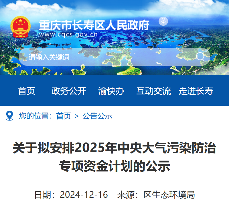 12月16日,重慶市長壽區(qū)生態(tài)環(huán)境局發(fā)布《關(guān)于擬安排2025年中央大氣污染防治專項資金計劃的公示》,中國石化集團重慶川維化工有限公司乙炔東區(qū)碳黑槽VOCs治理項目等3個項目進入了中央生態(tài)環(huán)境資金項目管理系統(tǒng)儲備庫。
