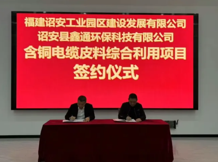 1月16日,詔安工業園區與詔安縣鑫通環保科技有限公司成功簽約含銅電纜皮料綜合利用項目。